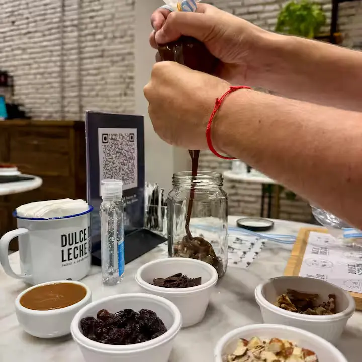 En esta inmersión total, conocerás nuestra historia, armarás tus propios alfajores y diseñarás un dulce de leche personalizado con toppings únicos. Finalizaremos con un maridaje disruptivo de sabores dulces y salados.